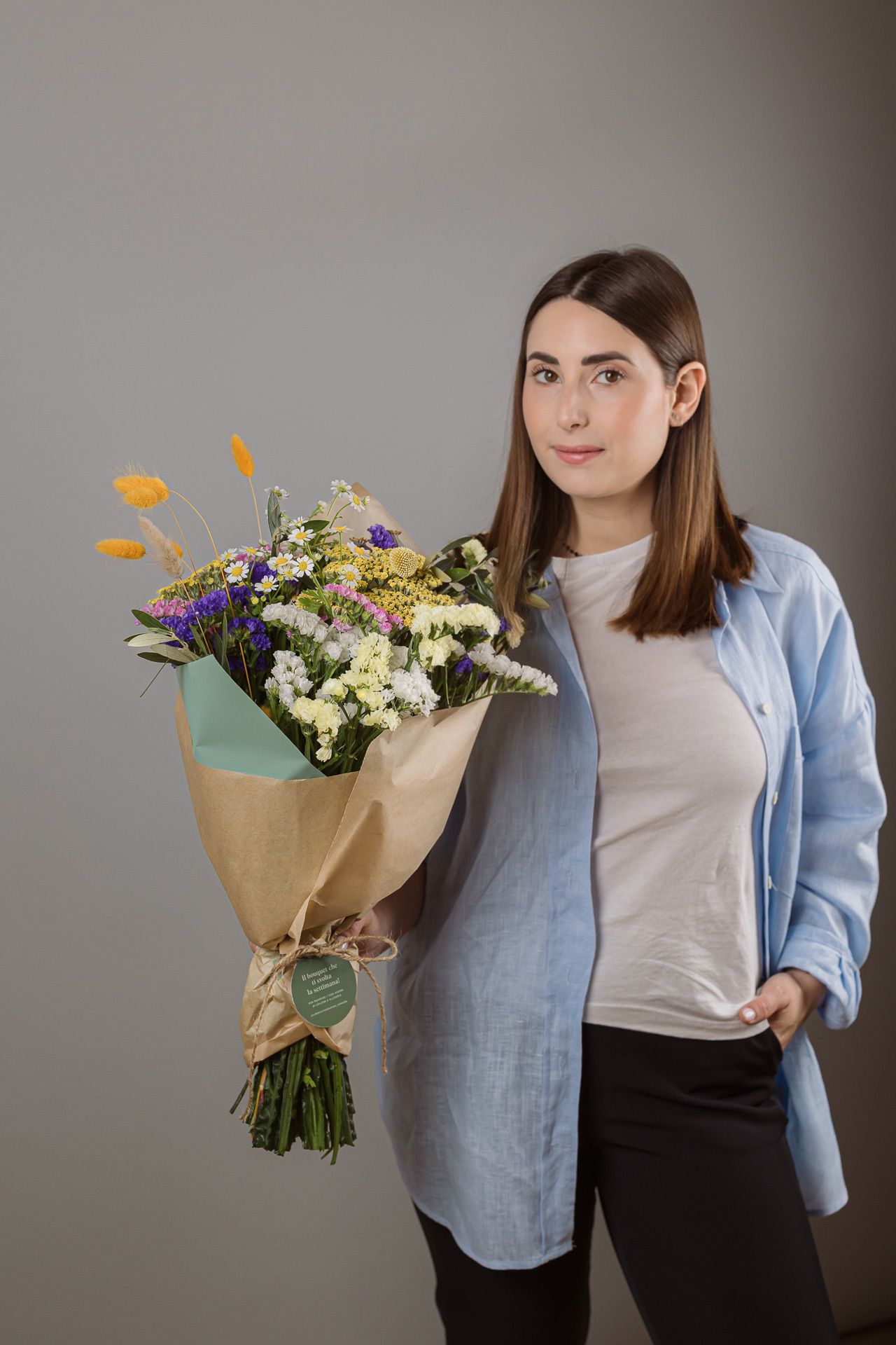 I fiori possono variare secondo disponibilità, mantenendo lo stile del bouquet.